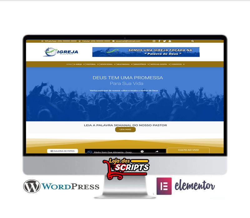 Ir para o conteúdoSite para Igrejas Evangélicas super completo com painel administrativo bem fácil e bem simples, 100% responsivo criado em plataforma WordPress modificado, sistema Elementor com arrasta e solta, acompanha vídeo aula de instalação passo a passo, e ainda daremos total suporte durante a instalação, agora você vai ter o site de sua igreja de forma bem simples e bem profissional, A entrega do script é automática, comprou ja baixa na hora pois nosso sistema de entrega é automático, bastando apenas entrar em sua conta em nossa loja e ja baixar o arquivo e as video aulas de instalação.